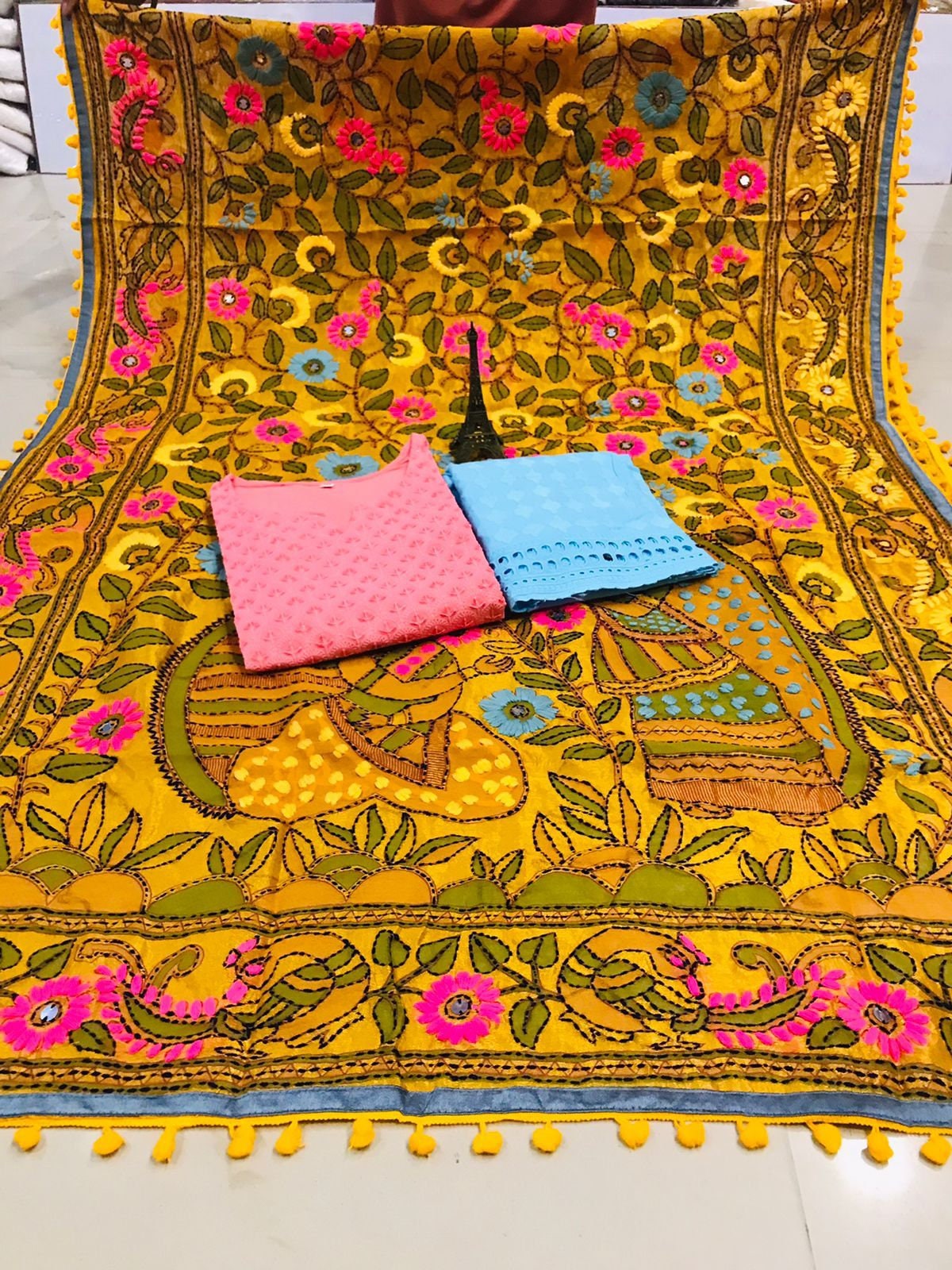 Phulkari Suit With Madhubani Dupatta For Women Etsy
