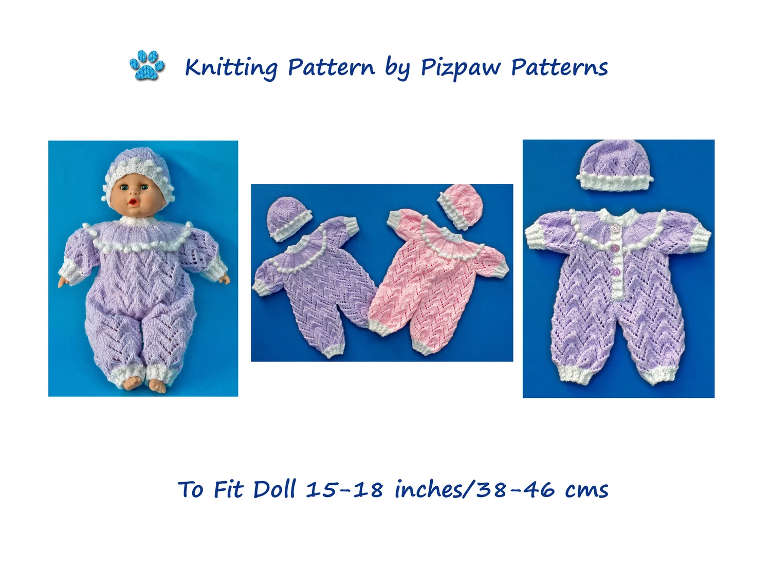 All In One Bodysuit Bootees And Hat Knitting Pattern To Fit Doll 15 18 Inch 38 46 Cms Pizpaw Patterns